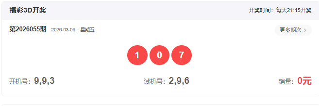 3D上期开奖回顾: