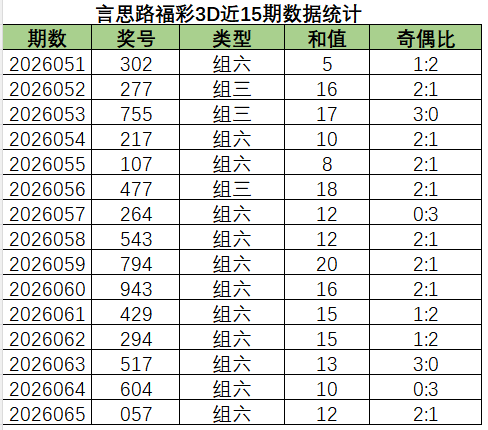 言思路福彩3D第2026066期,上期7码复式命中057