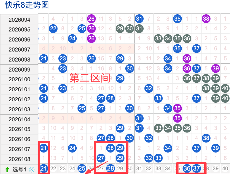 上期二区开出4个奖号(27.29.32.33)上期回顾二区开出4个奖号二区间在上期落位同比前期的话呈现了一个递减落位趋势,先来看本期号码21整体活跃度较,在近 30 期里有一定的间歇性出现,不是每期都开,近期整体走势还是比较热。号码28近期热度较温热,间隔性整体比较一般,说明其在当前阶段活跃度较温热注意防守。号码36近期活跃度较热有一定的间歇性近期整体走势相对还是很定没有特别明显的冷热趋势变化,号码3730期内活跃度较有明显的连续出现形态走势,整体表现比较
