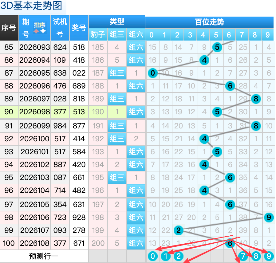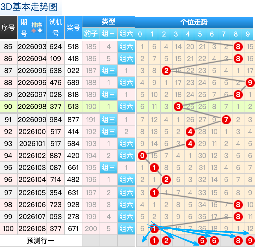 3D上期百位开出6号球,这个奖号6是一个热码的回补落位趋势也是一个比较好的符合百位上的落位点,先8号球这里还是有机会继续走出一个热号码落位趋势还是要注意防守的,还有一个就是0号球这里的6跨落位形态在这里的机会还是很好的要注意防守,然后9号球这里要注意是一个3跨落位回补趋势注意防守2号球在百位上要注意可能有机会走出折返落位的回补概率 。