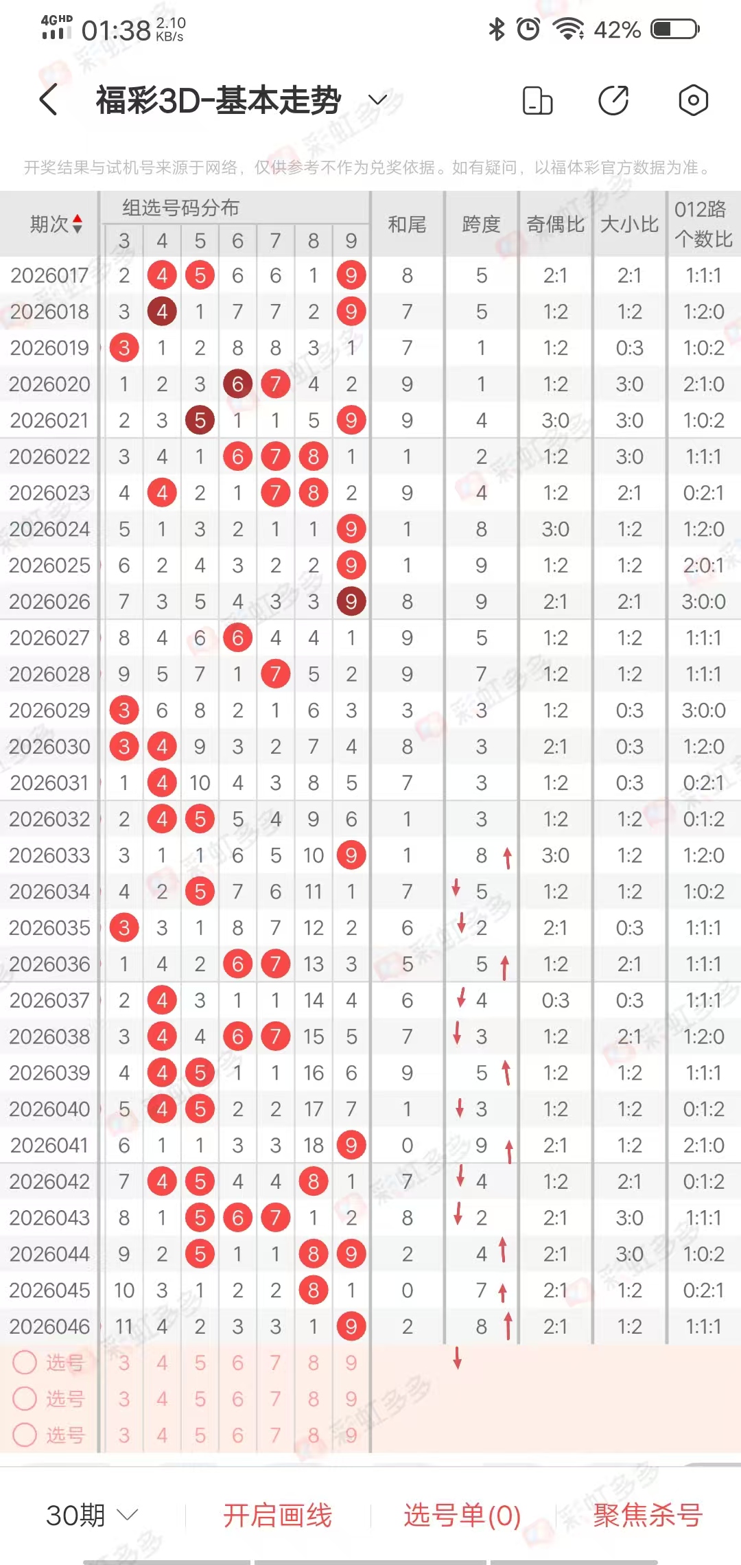 以上所有过滤条件并没有每期都是正确的,都是依靠各种数据环环相扣,总结出来的,我们在参考的时候,要抓住重点,比如和值小,大小1:2概率占大,比如跨度小,胆定小,那么789出现概率就小,9可以排除。当奇偶比或者大小比出现三期连出,第四期,很大概率是不出,尽量只做防守。