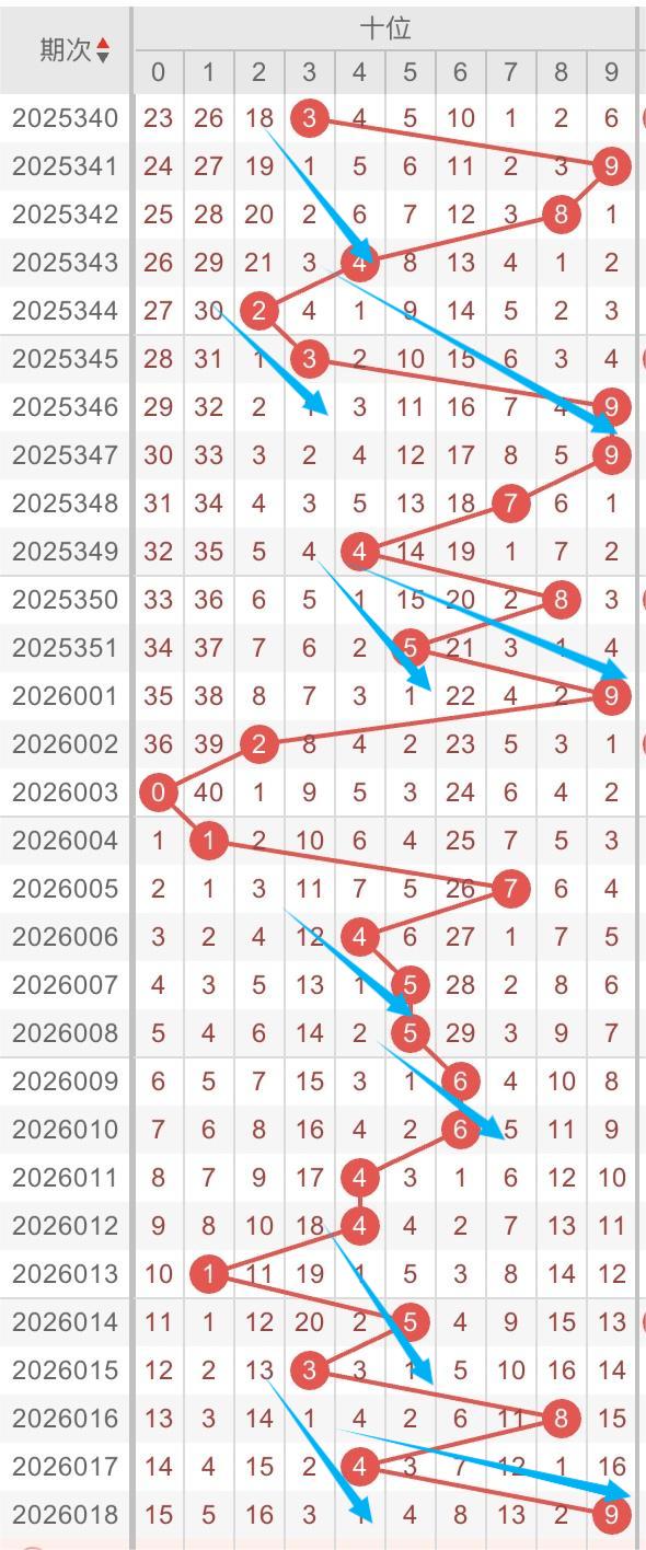 以近30期个位的走势形态分析:斜连交替出现。例如:数字2-3-4/7-8-9/3-2-1斜连开出。本期重点关注:数字数字3-4-5/4-5-6斜连开出。个人分析,仅供参考。