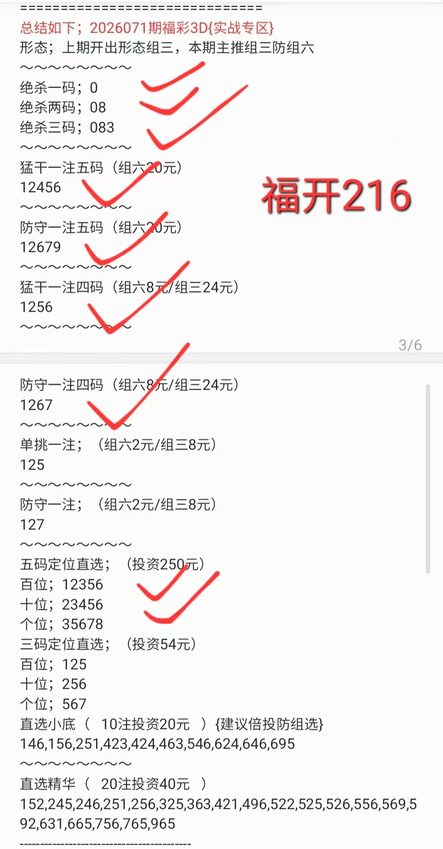 070期3D组选大底50+命对48 071期3D组选大底50+命对126