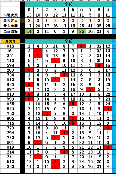 首先回顾上期福彩3D开奖号码和尾为7   的跟随号码为>>>223   形态>>>单双>>>1 : 2   大小>>>0 : 3   质合>>>3 : 0   大中小>>>0 : 1 : 2   和尾>>>7   跨度>>>1