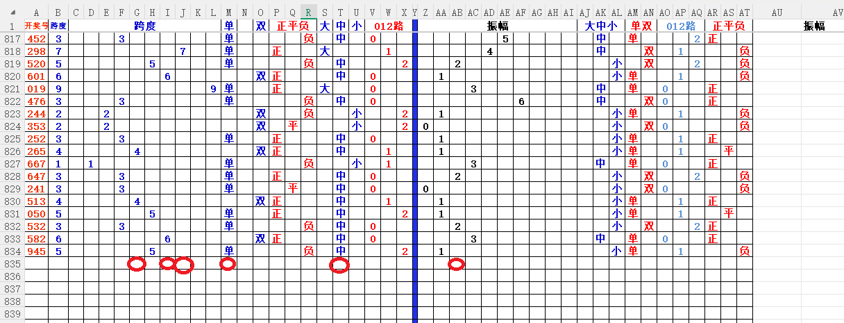 跨度:就是开奖号,最大数减去最小数所得的数,就是跨度。