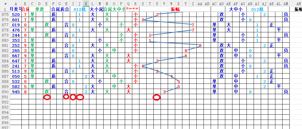 如上图2,012路分析,01路尾走比较好,关注0369147尾;