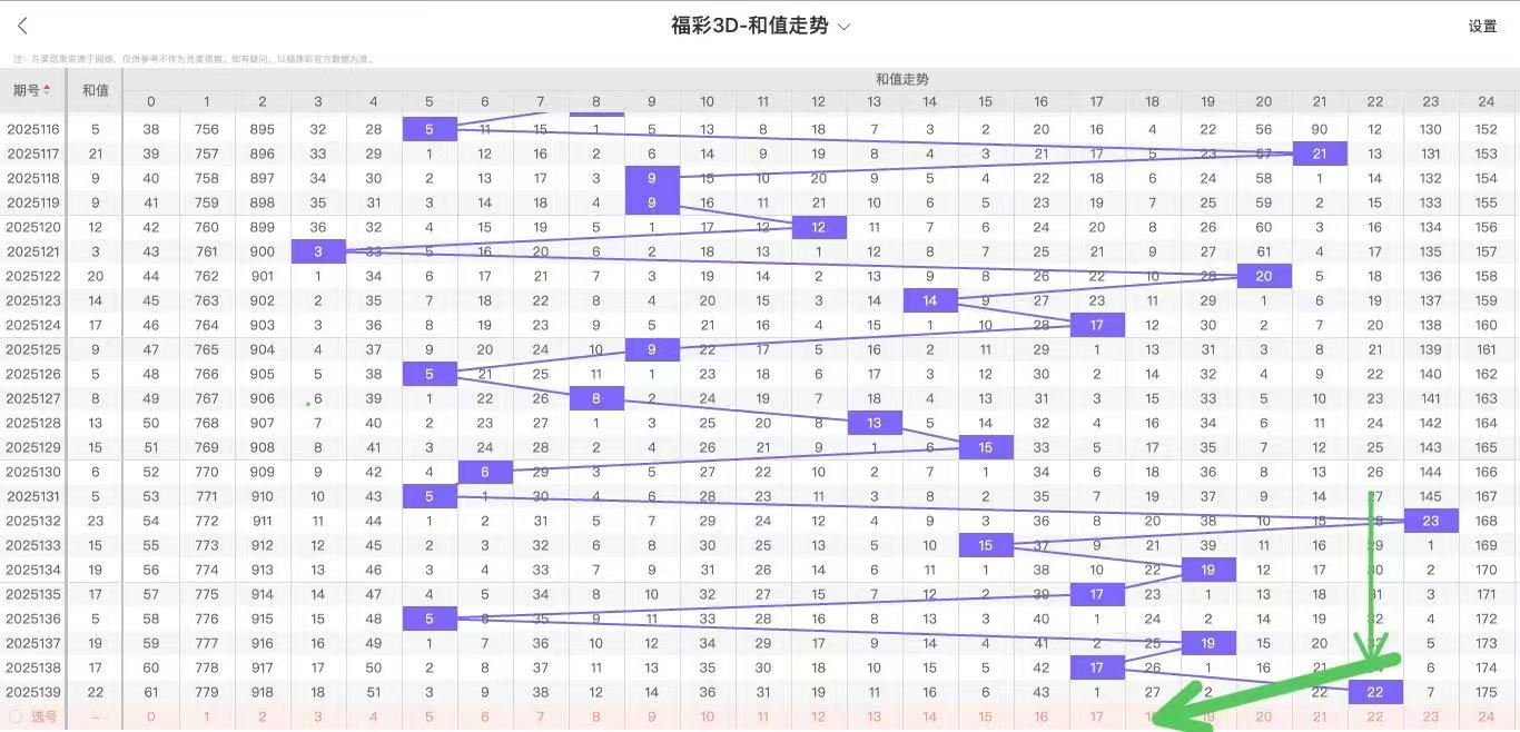 上期开出和值22,和值在第3分区,而近百期开出和值22共4次,下期数据:20 14 6 根据和值22的下期钟摆走势来看升趋势稳定,近期和值喜在第2分区活动,和值形态规律:奇:小和尾形态奇:小,那么本期重点推荐值范围是:9-19主奇