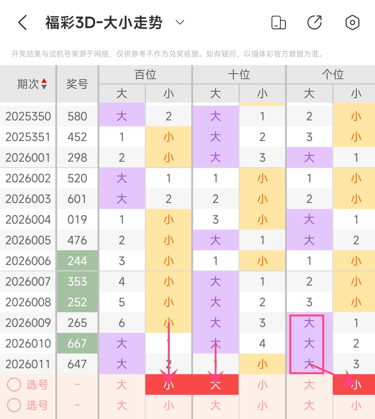 首先让我们回顾一下上期福彩3D第2026011期开奖号码为647 ,为组六形态,大小比为2:1,奇偶比为1:2,跨度为3,和值为17。