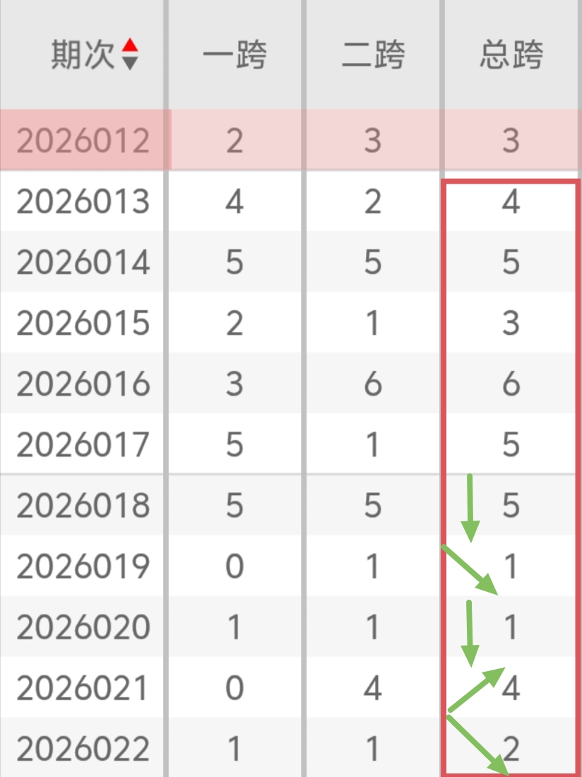 跨度分析从上图可以看出,近10期跨度值在3-7区间比较常见,其中在6-8区间中最为活跃。