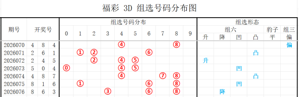 通过对走势的综合判断,现对福彩3D 2026076期分析如下: