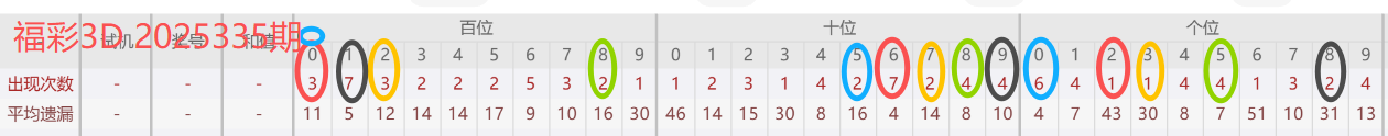 2025331期开奖号码050,我们可以看出近30期百位0出现3次,十位5出现2次,个位0出现6次。