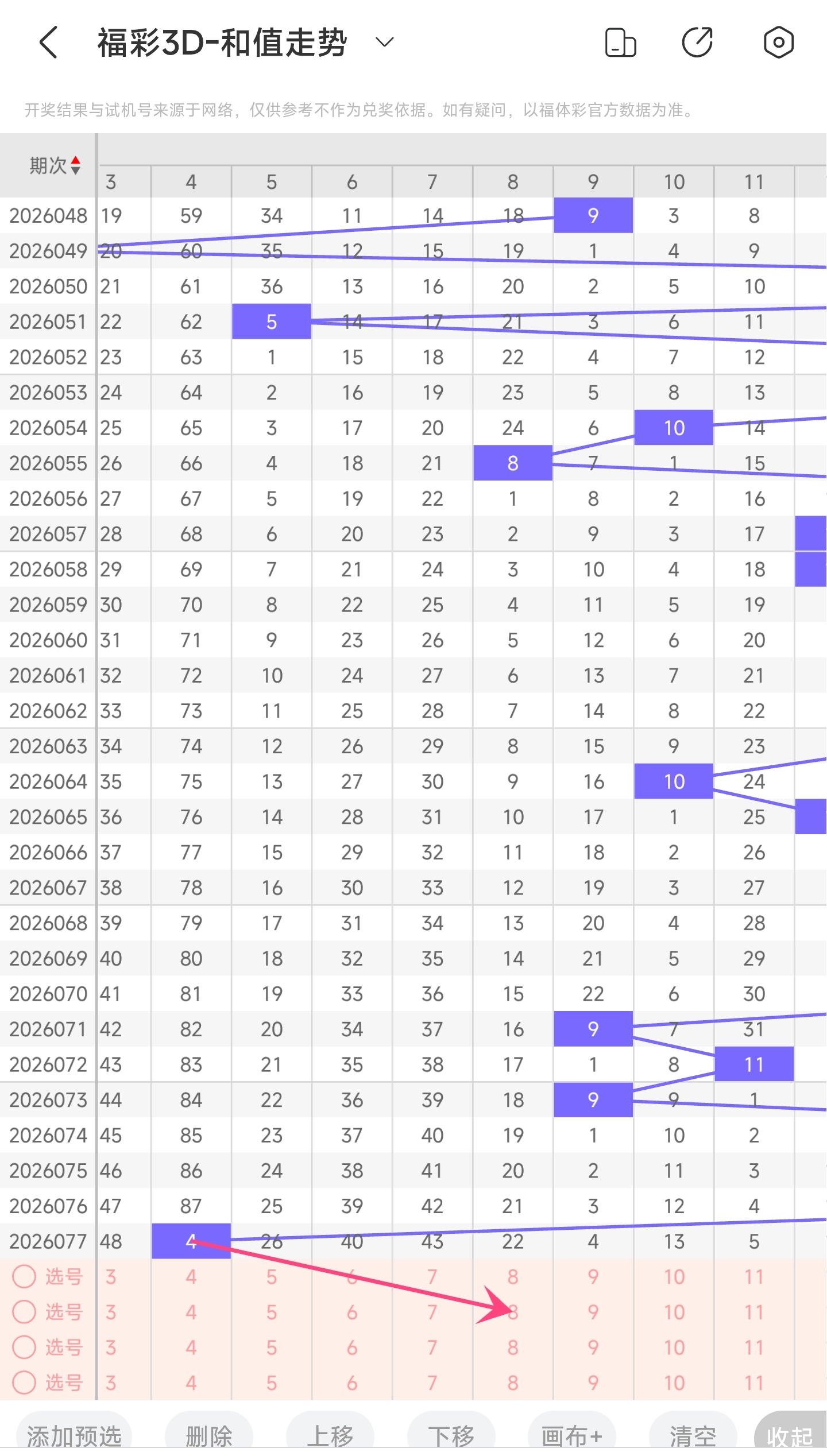 一、通过和值走势分析: