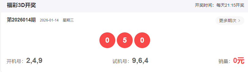 现在我们来回顾一下上期福彩3D,2026014期开出的奖号050,形态组三,小大小,和值5,5跨 合质合形态·