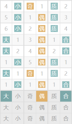 三、下来分析本期福彩3D十位大小、奇偶、质合、走势