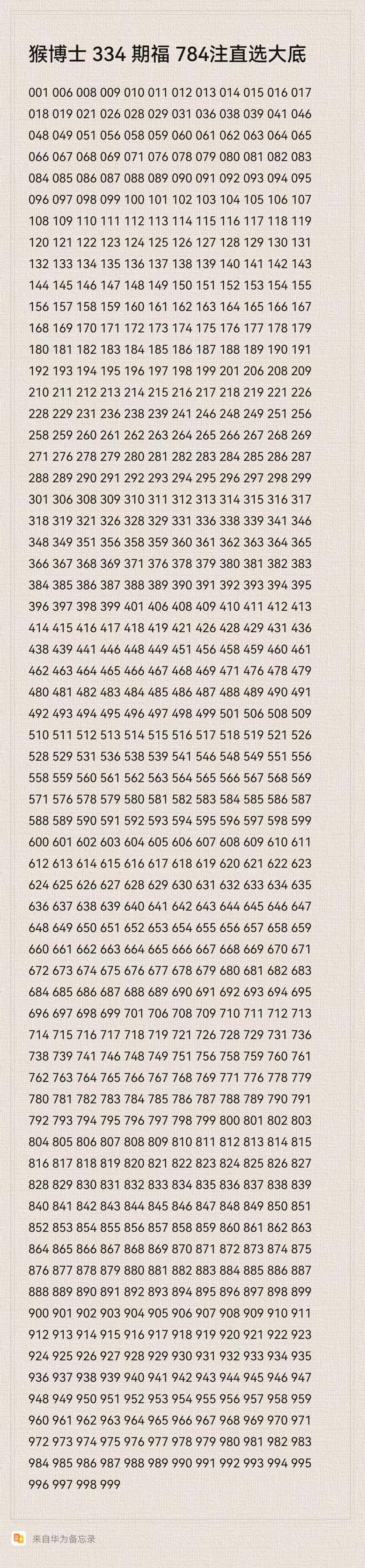 猴博士334期福784注组选大底:(可以当母底用,然后进行缩水)