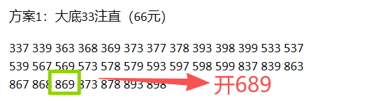首先来看上期开奖号码为:689,和值为23.上期大底中组六。