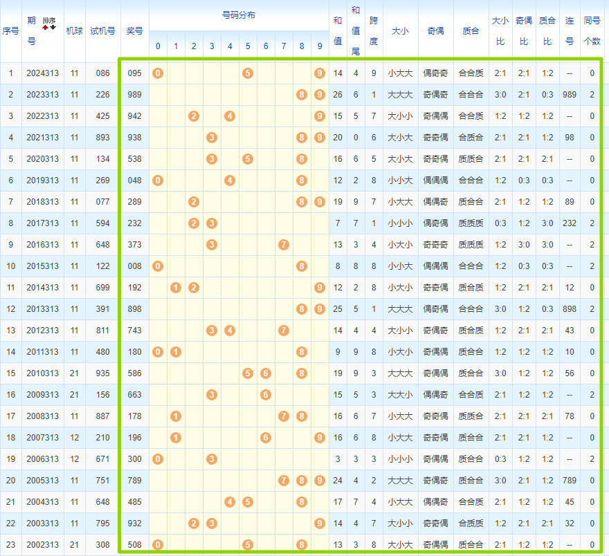 1、统计往年同期开奖号码