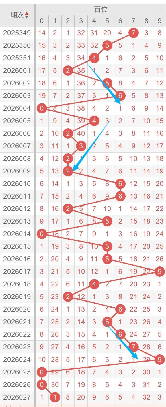 以近30期百位的走势形态分析:斜连、跨度形态交替出现。例如:数字0-5-9/9-0跨度开出,数字4-5-6/4-3-2/5-6-7/斜连开出。本期重点关注:数字1-7/1-8跨度开出,同时关注数9-8-7斜连开出。个人分析,仅供参考。