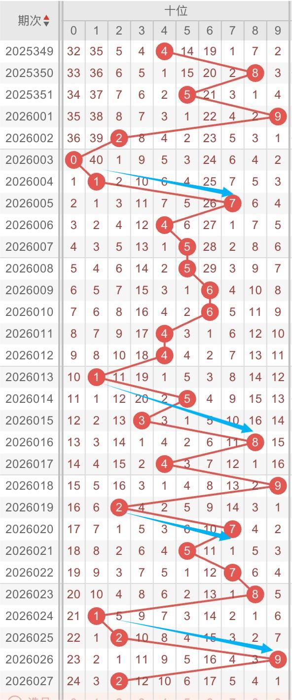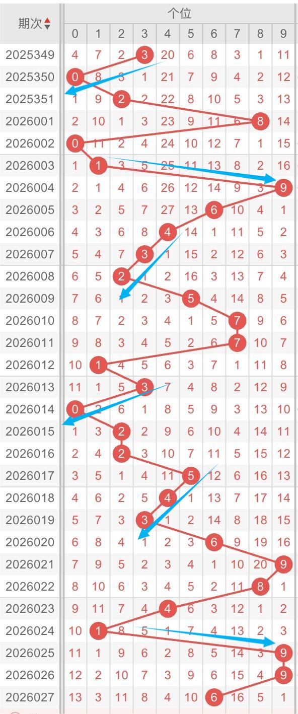 以近30期十位的走势形态分析:跨度形态多次出现。例如:数字1-7/1-8/2-7/2-9跨度开出。本期重点关注:数字9-1/9-0跨度开出,同时关注数字2-3-4斜连开出。个人分析,仅供参考。