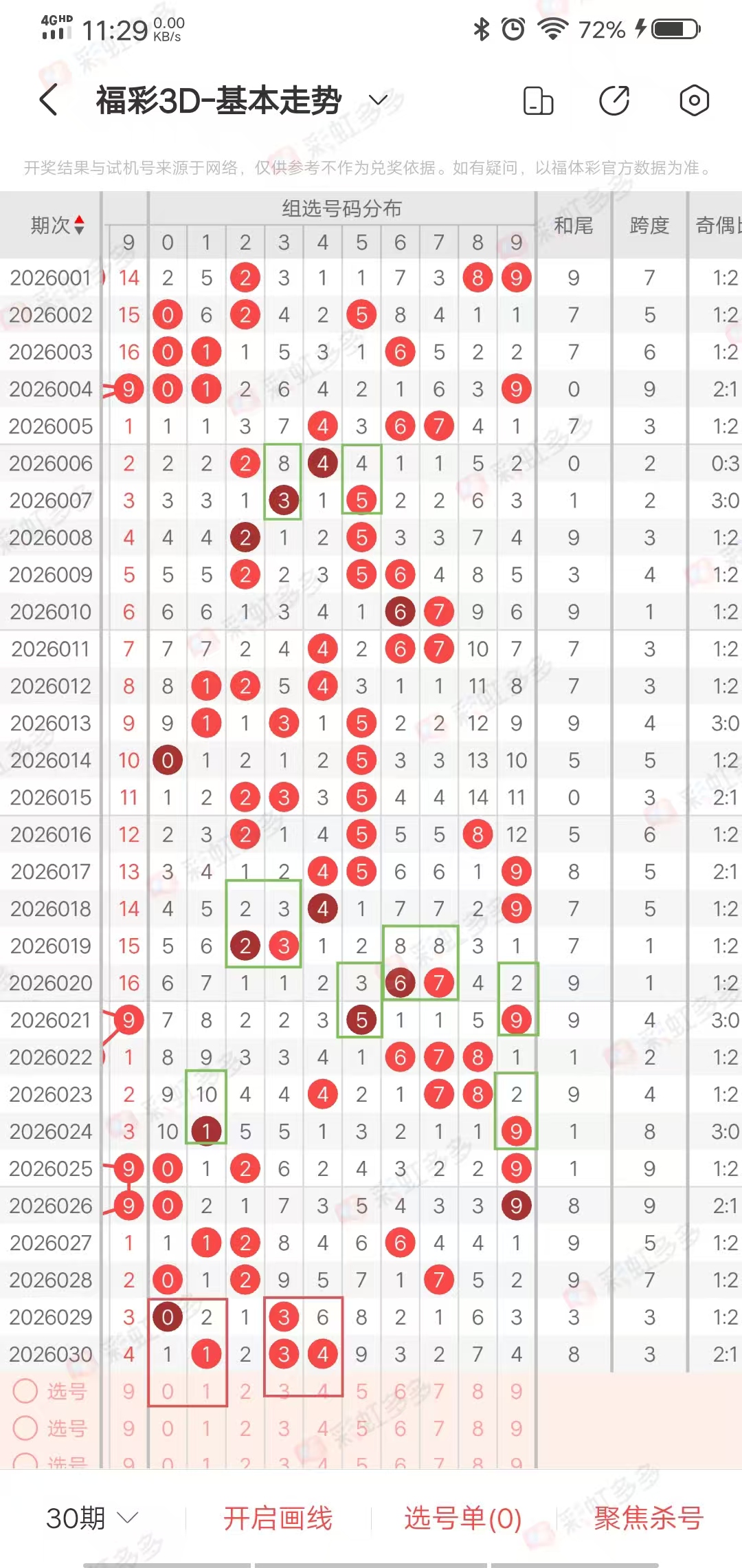 从走势图近30期看,近30期跨度012路出号走势01,201,2002,2010,012,0221112,120,021,00