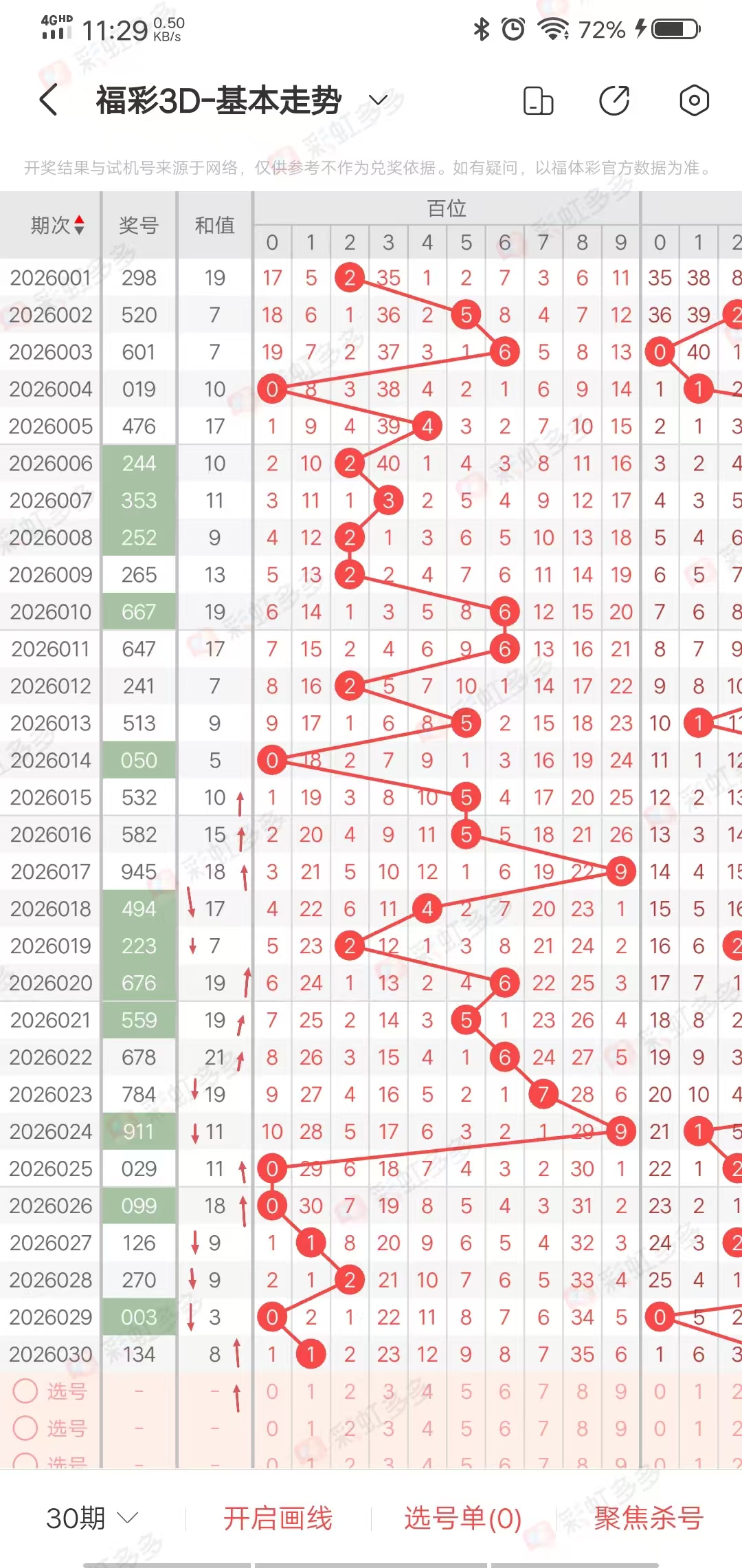 从走势图近30期看,近30期和尾012路出号走01101010001,102,0221100101,120,002