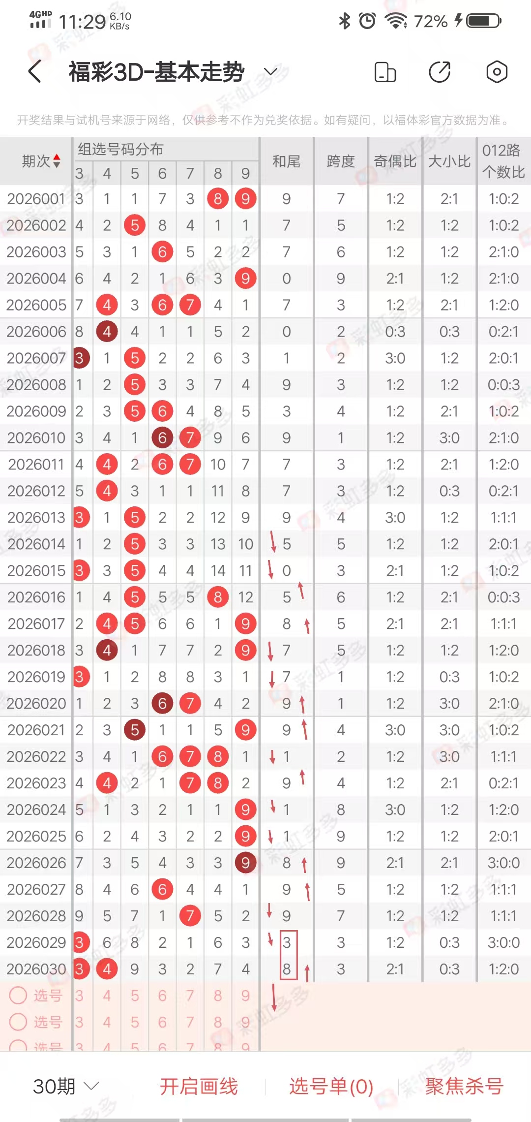 以上所有过滤条件并没有每期都是正确的,都是依靠各种数据环环相扣,总结出来的,我们在参考的时候,要抓住重点,比如和值小,大小1:2概率占大,比如跨度小,胆定小,那么789出现概率就小,9可以排除。当奇偶比或者大小比出现三期连出,第四期,很大概率是不出,尽量只做防守。