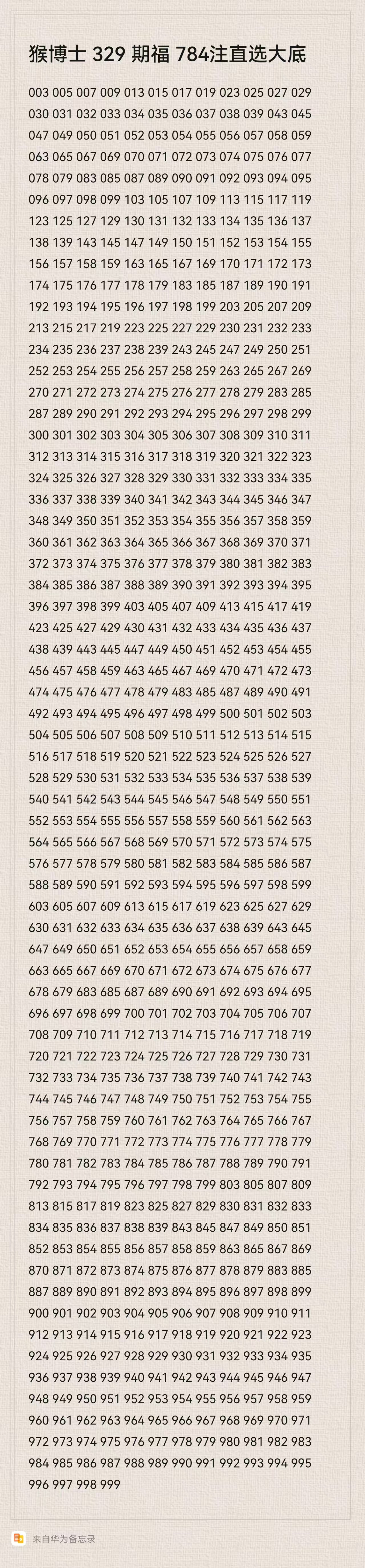 猴博士329期福784注直选大底:(可以当母底用,然后进行缩水)