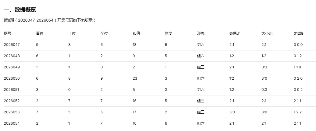 通过对近8期福彩3D数据的多维度剖析,我们发现了重号惯性、连号高频、组三连出后转组六、分位热号集中、和值震荡回归、跨度大小交替等一系列显著规律。尤其冷号4的长期遗漏值得重点关注。这些规律为彩民提供了科学的选号参考,但彩票本质随机,历史数据不能完全预测未来,请理性投注,量力而行。愿本文的分析能为您带来启发与帮助。