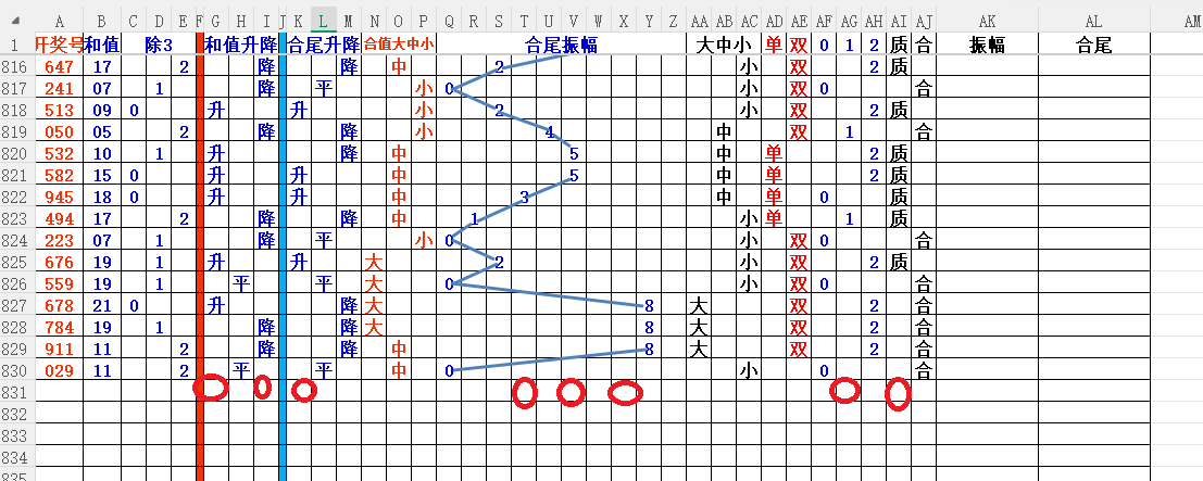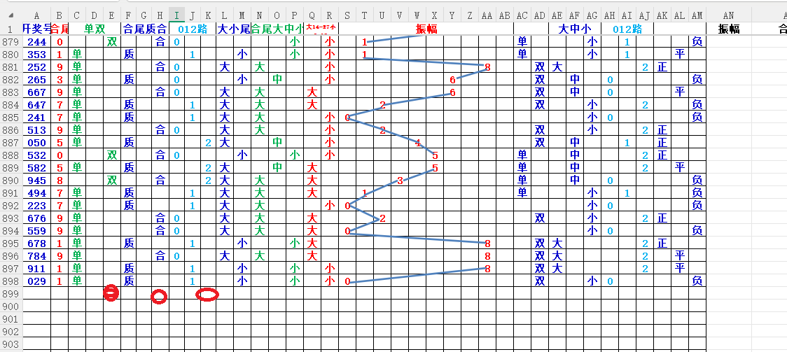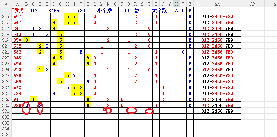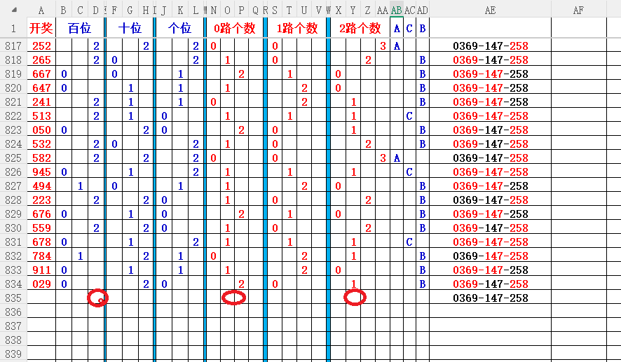如上图2,012路分析01路尾走比较好,关注0369147尾;