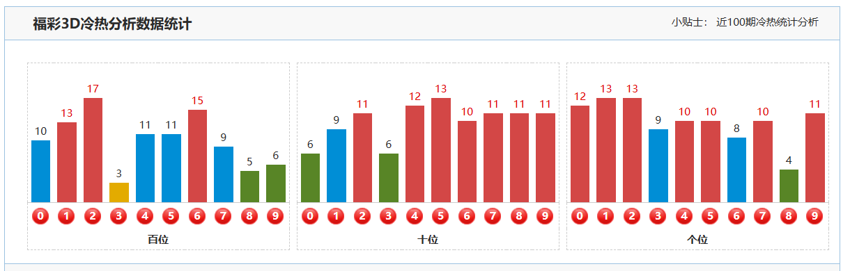 2. 十位分析:上期福彩3D的十位开出了号码1,这是一个小的奇数。从近期的开奖数据来看,十位号码在多个位置上频繁出现,表现出较强的活跃性。然而,值得注意的是,上期的十位号码振幅变化较大且呈下降趋势。本期在十位的分析中,我们预期该位会回补上升,即关注那些与上期相比数值有所增大的号码。因此,本期重点关注号码01345678