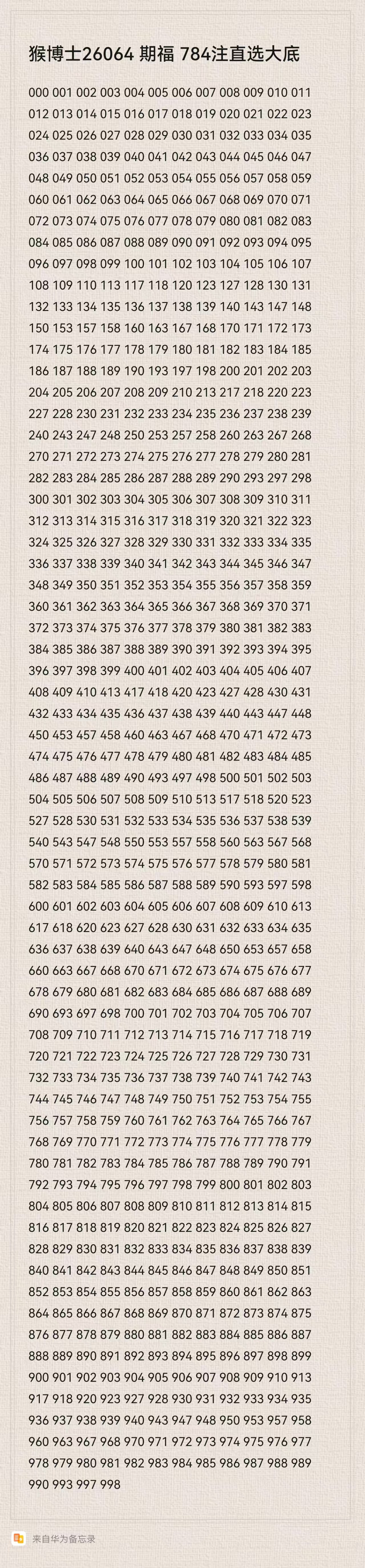 猴博士26064期福784注直选大底:(可以当母底用,然后进行缩水)