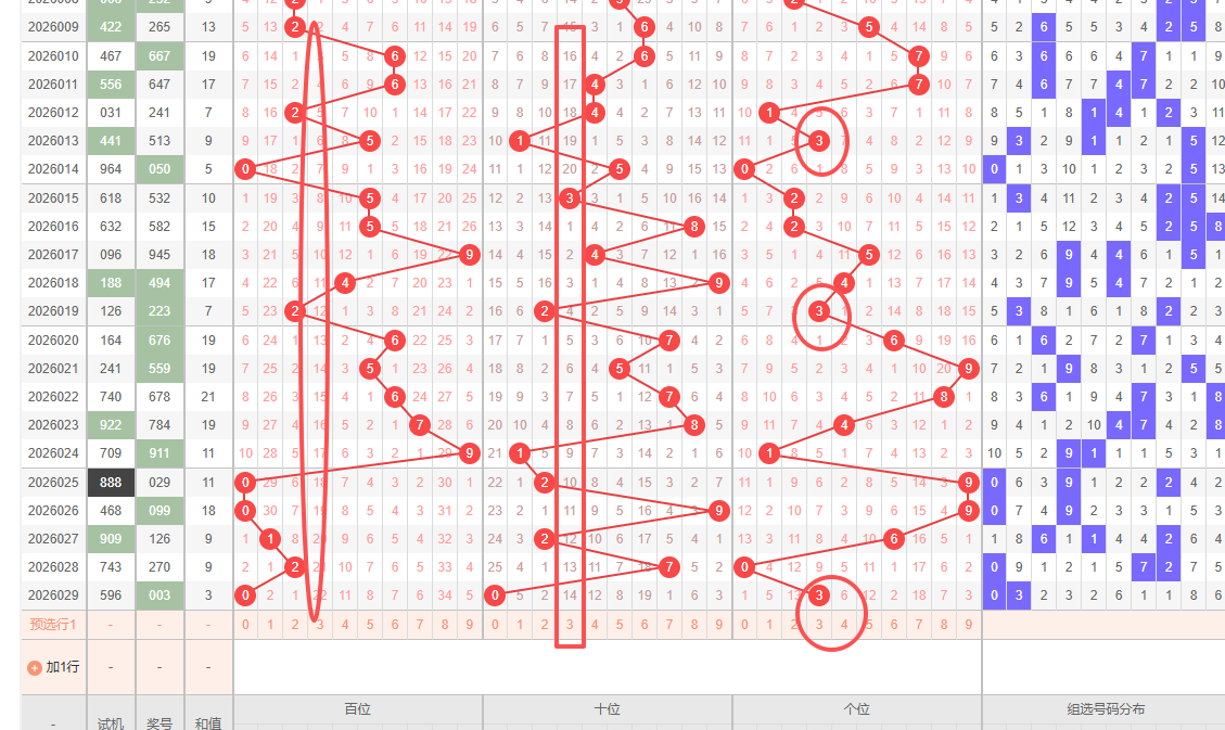 • 号码驻留:重点关注号码 3 的延续性。按照直落惯性,3号极有可能从个位向百位或十位平移。同时,热轴号码 2 的回归是不容忽视的重点。
