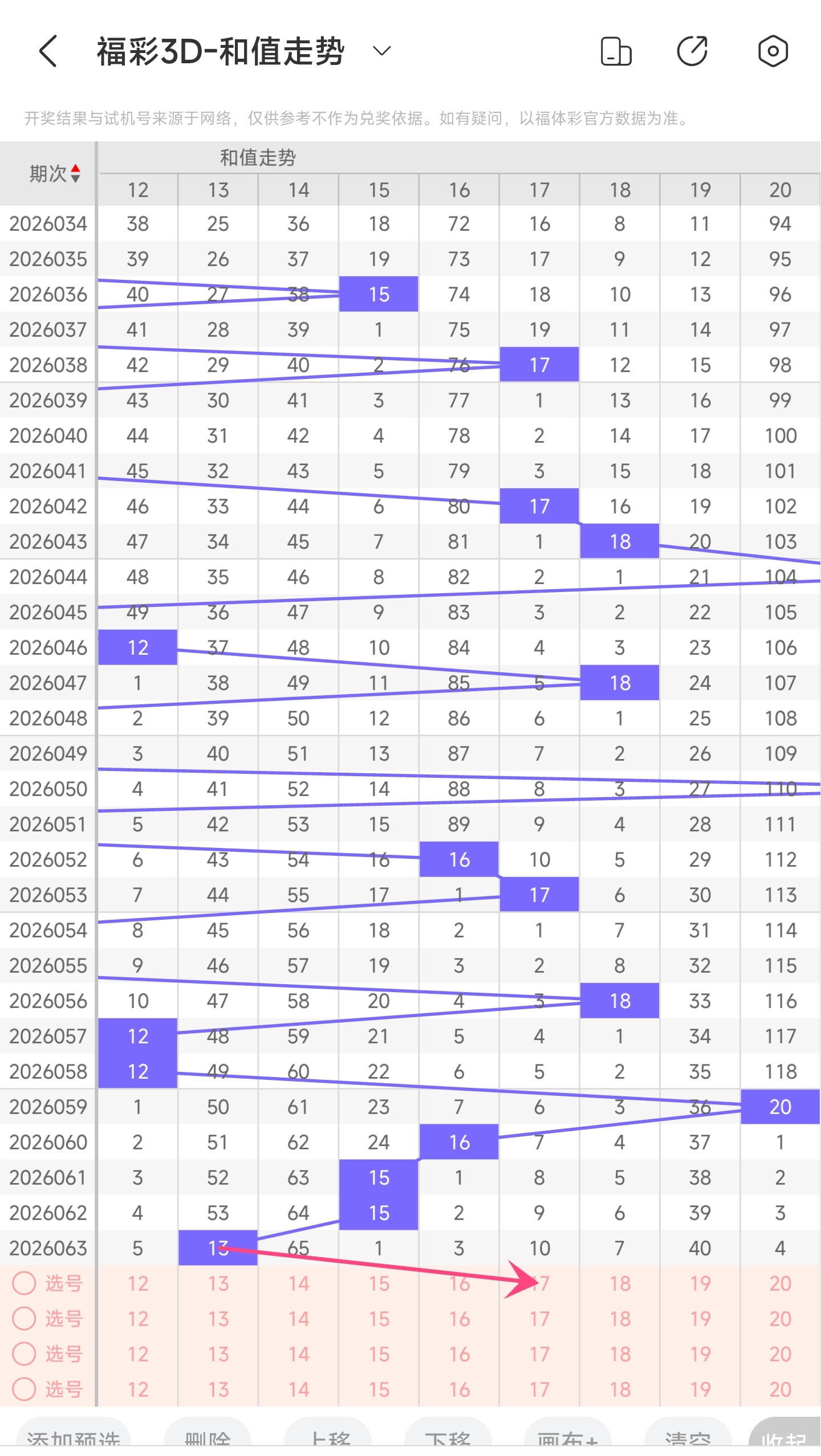 一、通过和值走势分析: