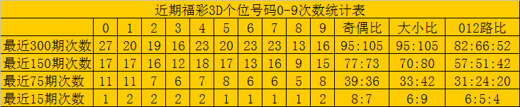 个位分析:最近300期奖号由冷到热表现为:325,926,2827,128,430,6733,535,036次,该位号码奇偶比为147:153,大小比为154:146012路比为120:91:89