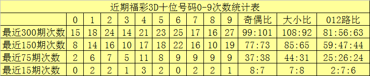 最近15期奖号由冷到热表现为:1380,471,0292,63,54次,奖号奇偶比为7:8,大小比为105012路比为7:2:6