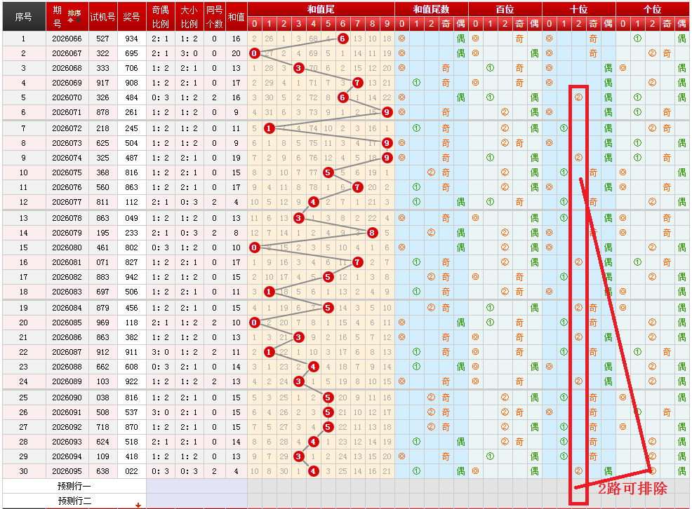 个位:上期开出偶数2路小尾2,按跟随表现,综合选择 2 3 4 5 6 7 9