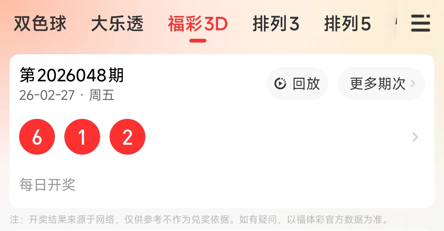 关于2026049期福彩3D分析,上期5码定位6码复式命中612,3胆命中62
