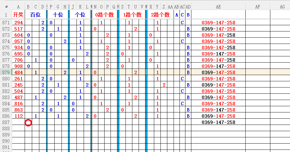 如上图2,012路分析01路尾走比较好,关注0369147尾;