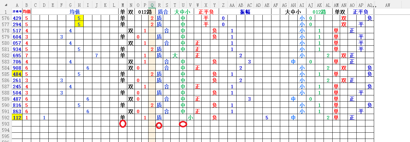 均值:就是开奖号每各数的总和除3,然后得到的余数,如果不够整除可以+1,-1,直到被整除得的数就是均值