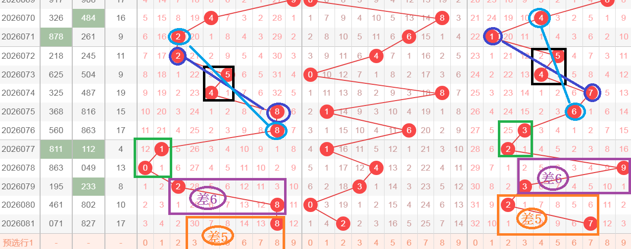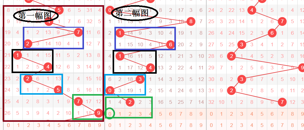 这是一张十位分析图,是叠加图,利用百位来分析十位,黑颜色框是坐标,所有框都是对称,文字表达不太清楚,大家可以观看上面的视频
