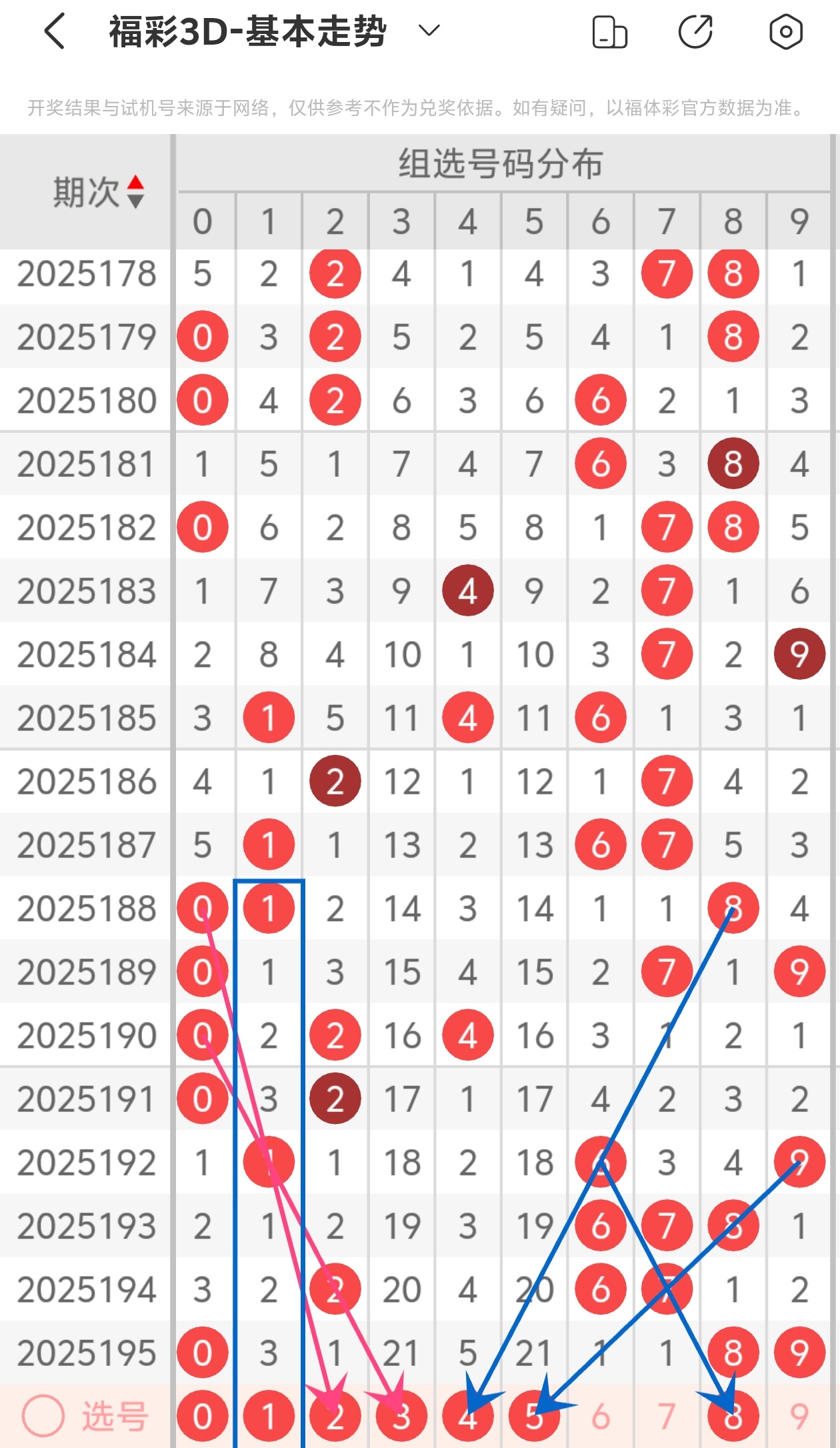 通过以上简单分析,我们看下25196期号码的定位分析: