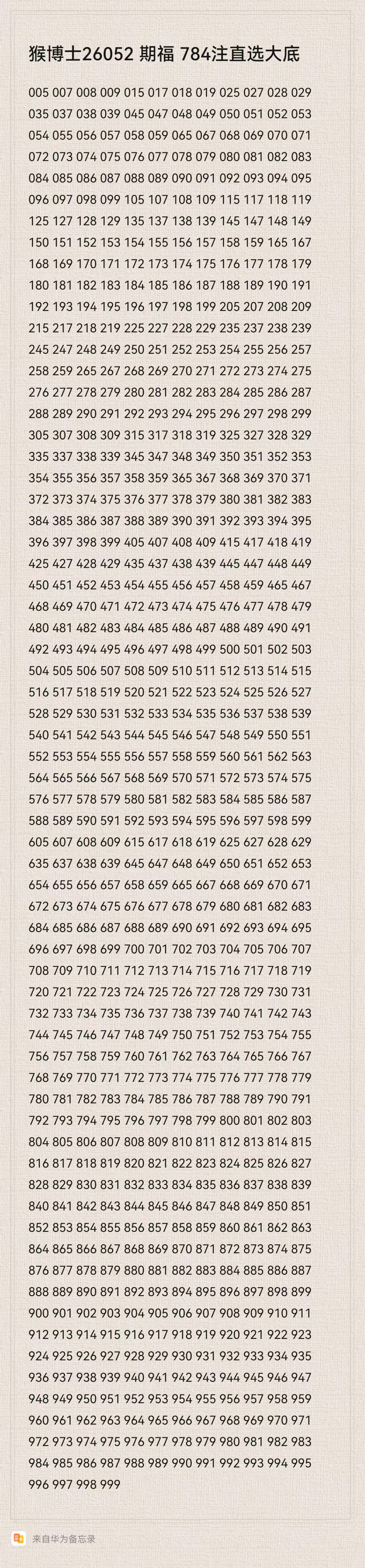 猴博士26052期福784注直选大底:(可以当母底用,然后进行缩水)