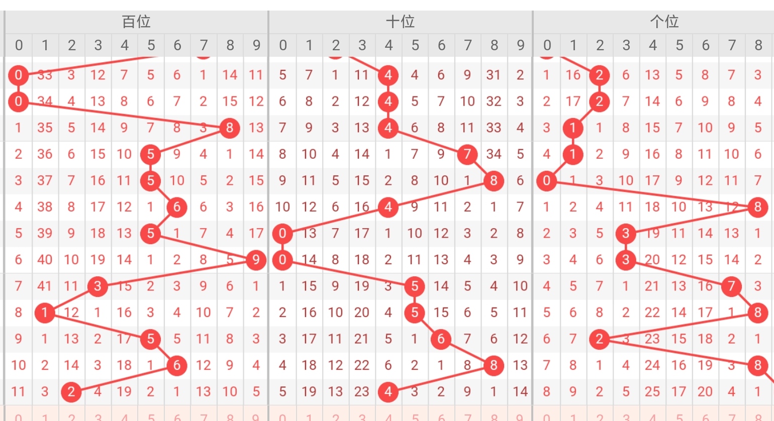 奉上百位.十位.个位近期开奖走势图