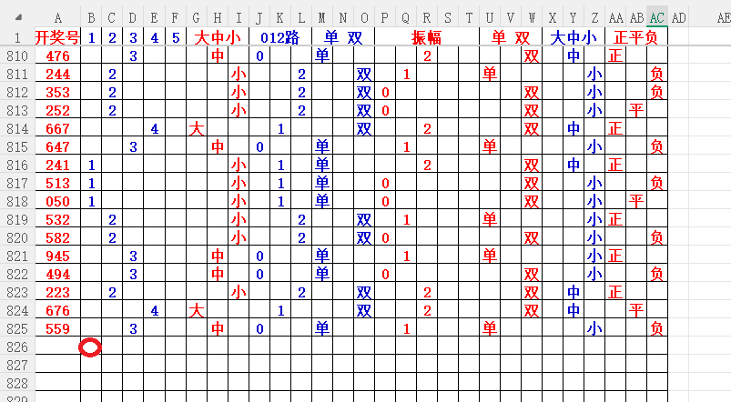 如上图56,大中小分析,中号3456出胆码,最低1个胆码,重点34