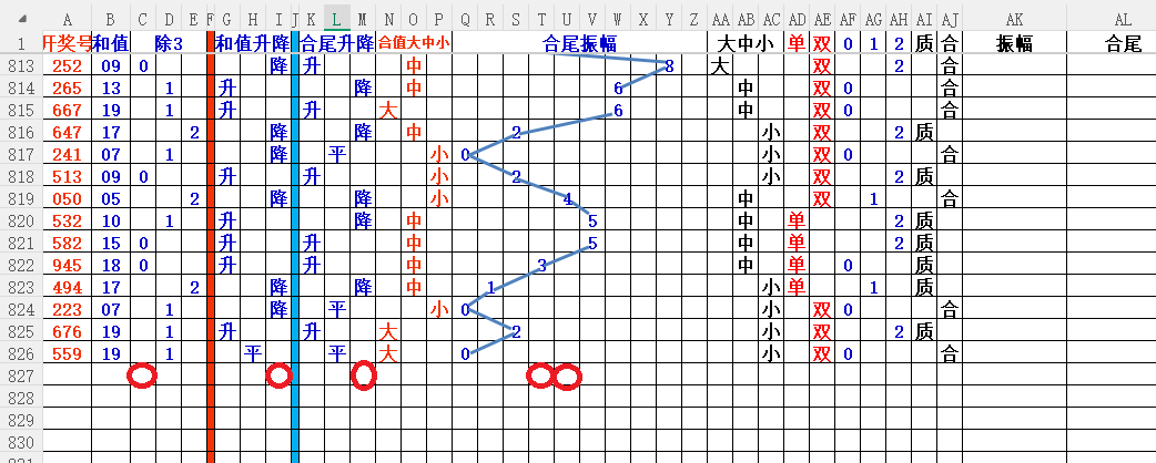 如上图3,和值升降平分析,和值升概率大,小于19和值