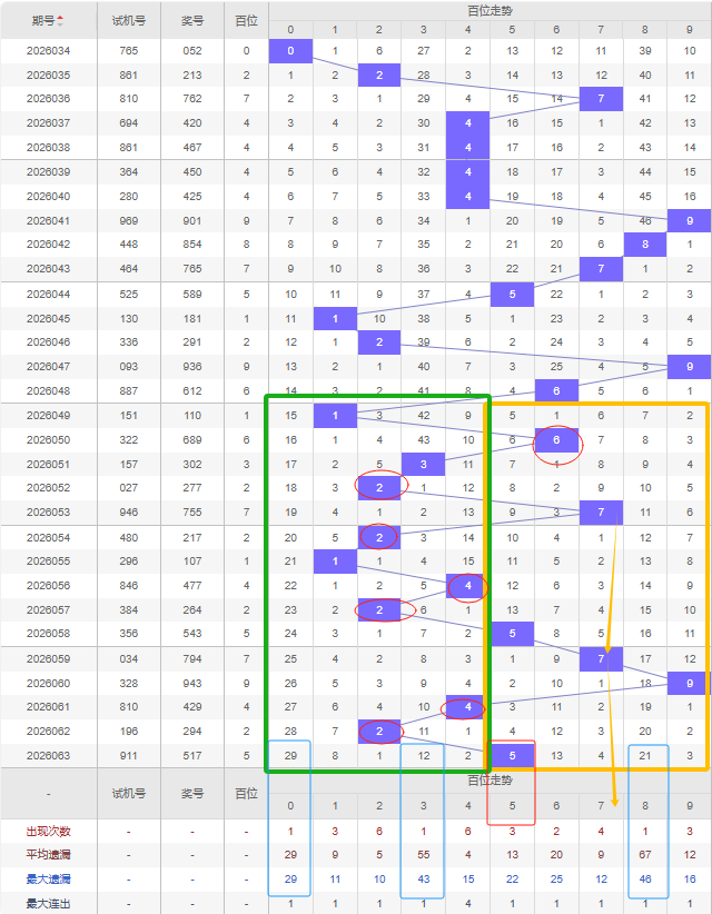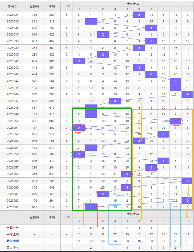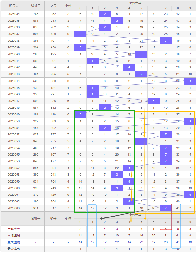 福彩3D第2026063期个位先分析奇数偶数,近十五期开出奇数号10期,开出偶数号5期,开出偶数号的概率比开出奇数号的概率小。近十余期都是奇数偶数间隔开出的,上一期又开出了奇数7号,本期还是看好继续开出奇数,建议考虑遗漏期数较大的奇数号,比如8号是个位遗漏期数最大的,且达到平均遗漏期数和最大遗漏期数,那么可以防冷号开出。