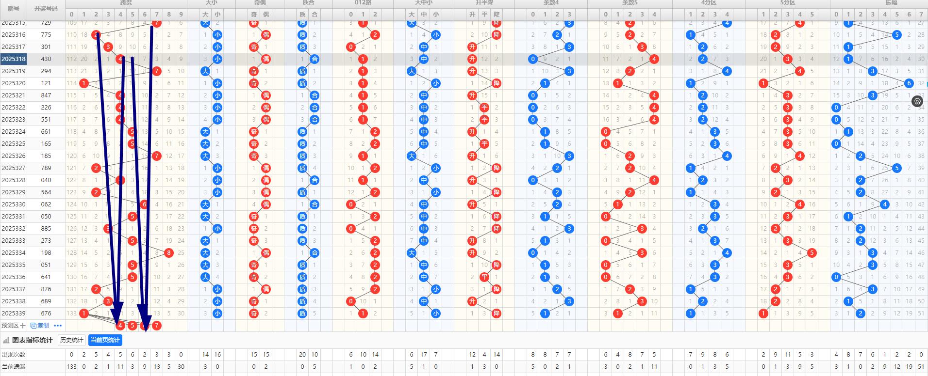 和值预判分析 从近期的和值走势来看,小数和值与大数和值呈现出交替出现的趋势。012路和值的比例也相对均衡。因此,预测本期可能开出数。具体和值推荐12.15.22.25.