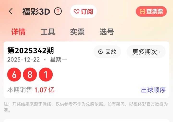 福彩3D上期开奖号码如下图: