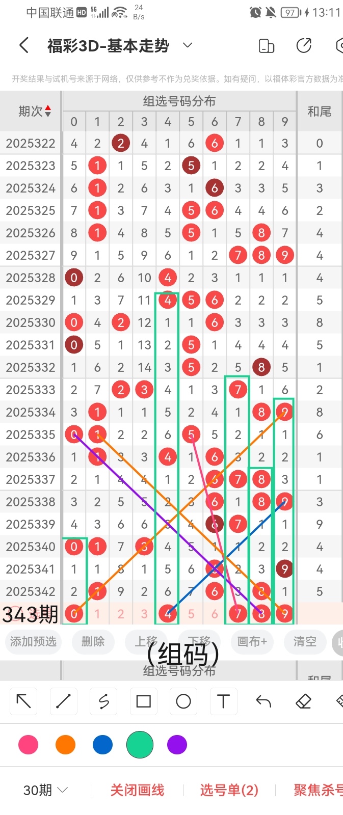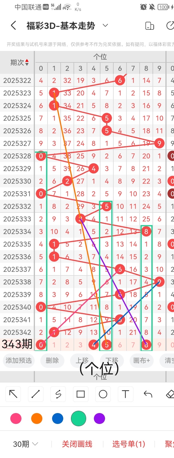 通过以上对上期的简单回顾,下面进入2025343期(下面简称本期)的选号分析: