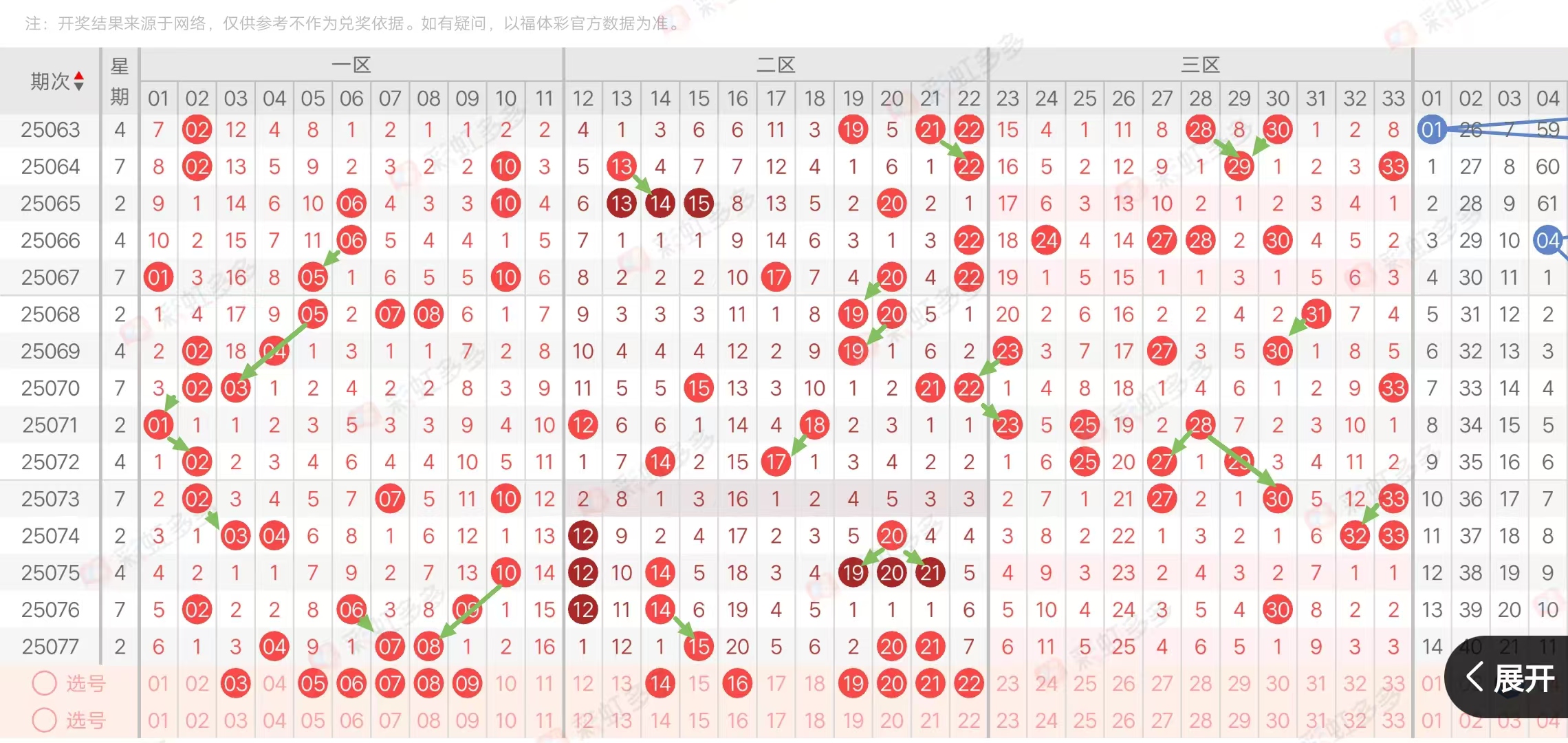 (三区:一区1-11,二区12-22,三区23-33)上期三区比3:3:0